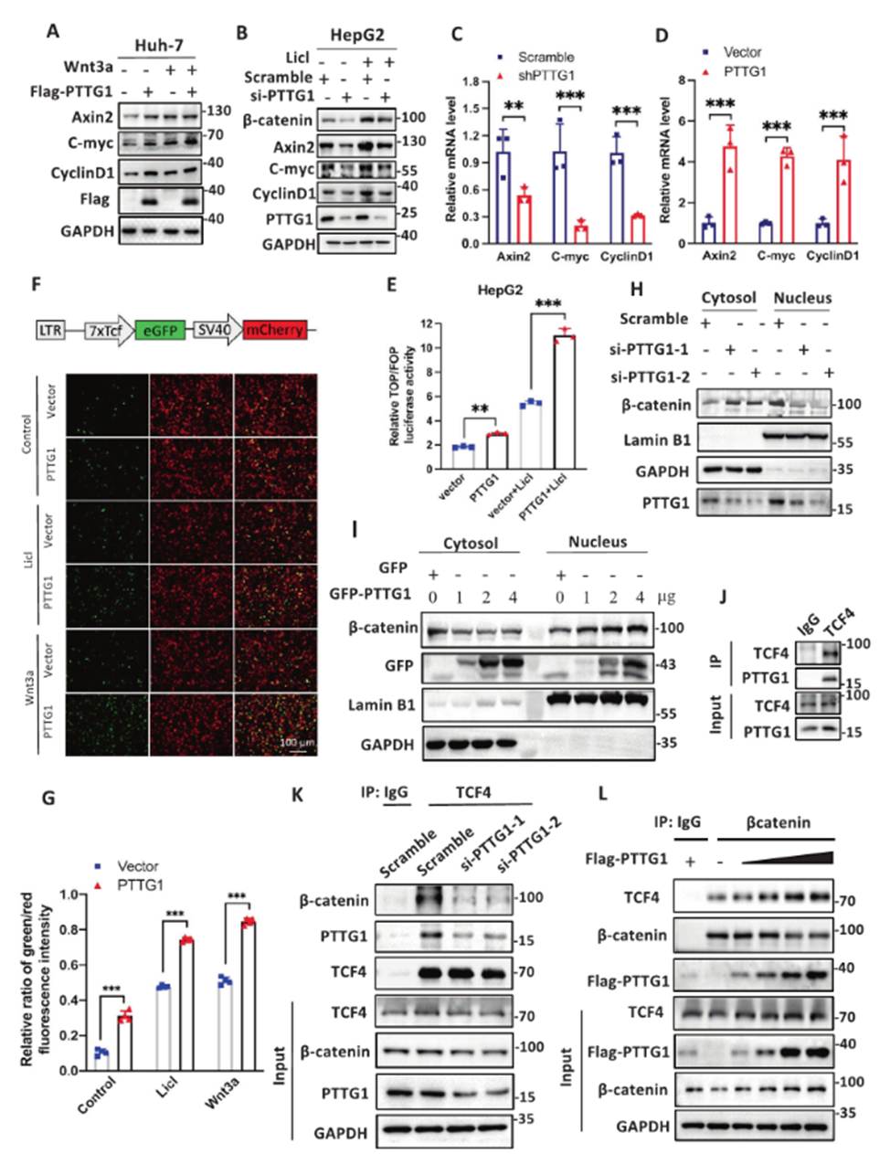 综上所述,该研究工作阐明了PTTG1调控Wnt信号通路的分子机制,以及对PTTG1磷酸化核易位的研究提供了关键的见解,为临床上肝癌的早期诊断和有效治疗提供潜在靶点。